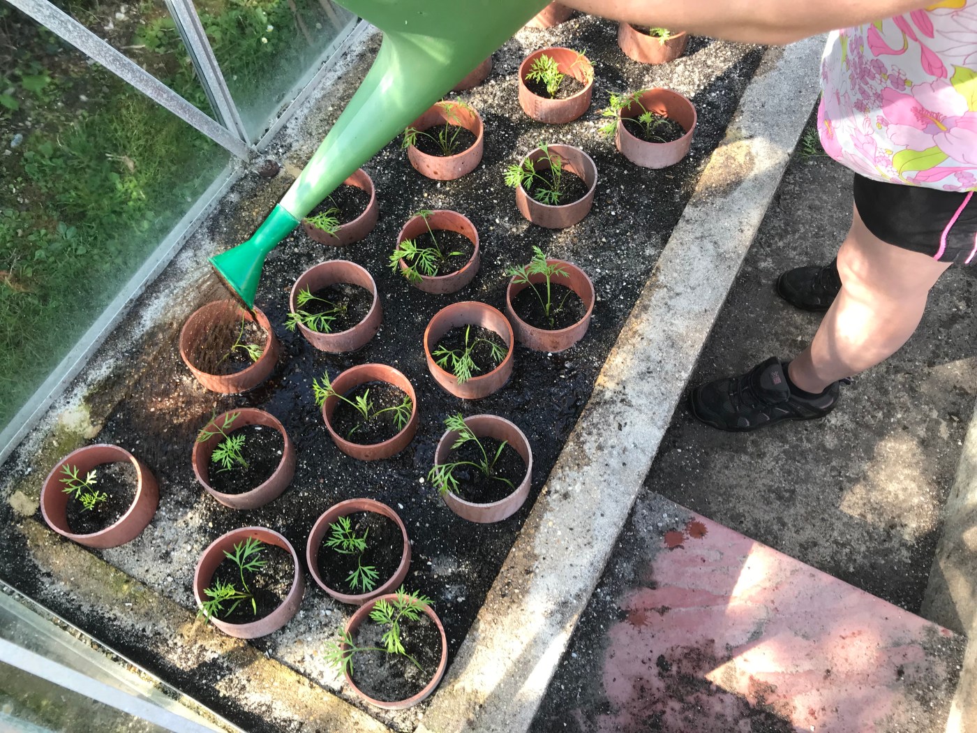 The seaweed solution is used as a preventative method against carrot root fly. Carrot root fly can smell carrots a mile off, and the last thing you want is for the carrot root flies to know where your crop is! Therefore, by watering the carrots after thinning with a solution of seaweed which is equally if not more pongy than the carrot seedlings you have just extracted, we hope to confuse the carrot root fly and prevent them from finding our carrots!
