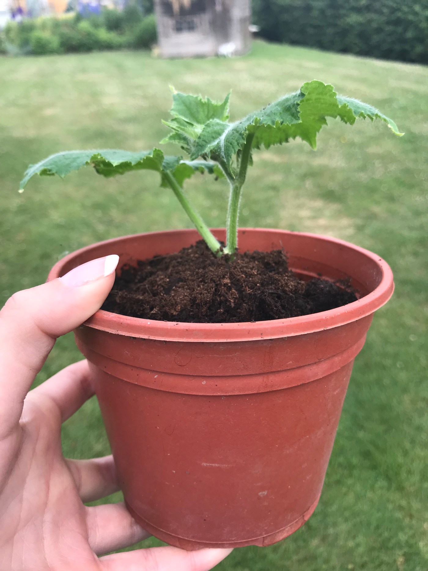 This plant is one taken from one of our Passandra mini cucumbers a couple of weeks ago which has now been potted up. Once big enough, we’ll plant it out.