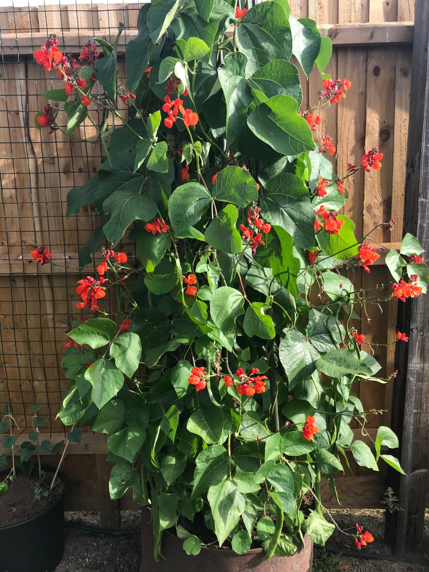 As you can see from the photos, pollination has been good, and we haven’t suffered from too many flowers dropping off, so there are lots and lots of runner beans coming along.