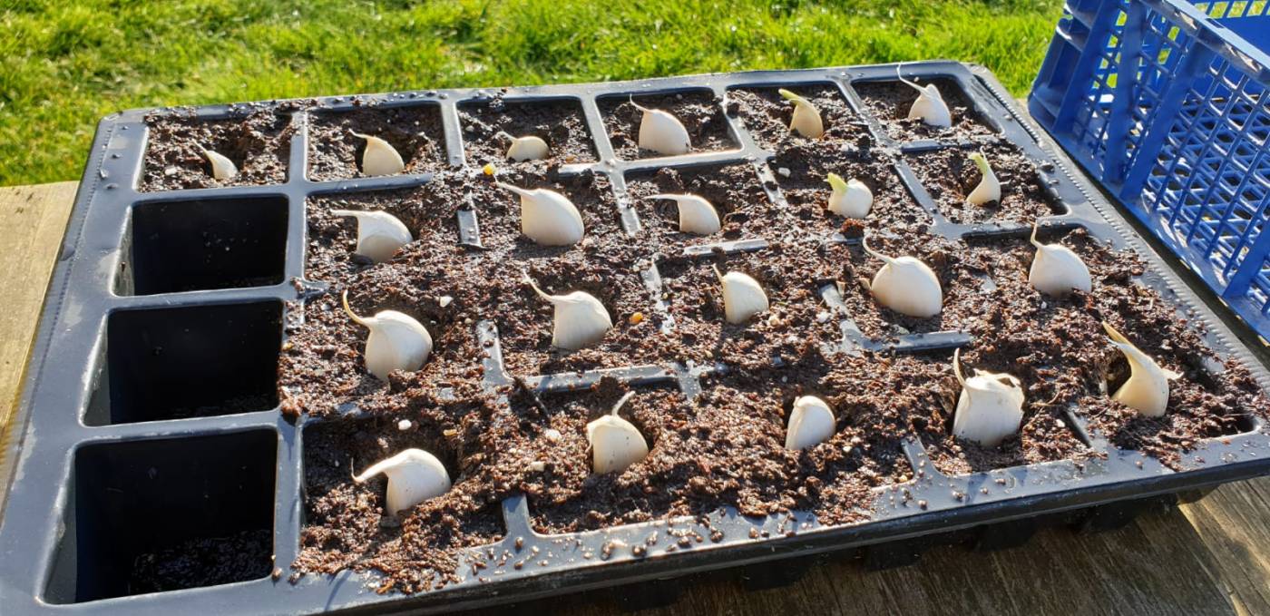 As you can hopefully see from the photo, some of the garlic cloves have already started to sprout, but we hope that the rest will start doing the same before long!