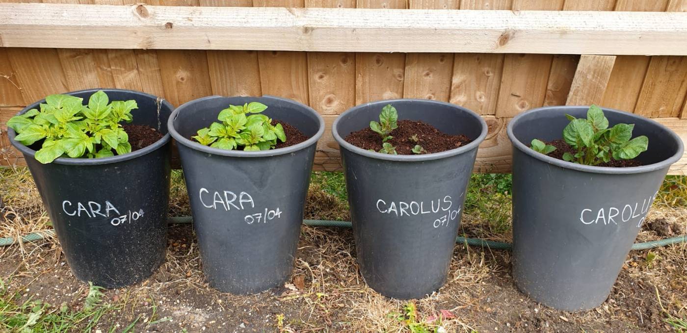 Our main sowing of potatoes, Cara and Carolus are starting to show now!