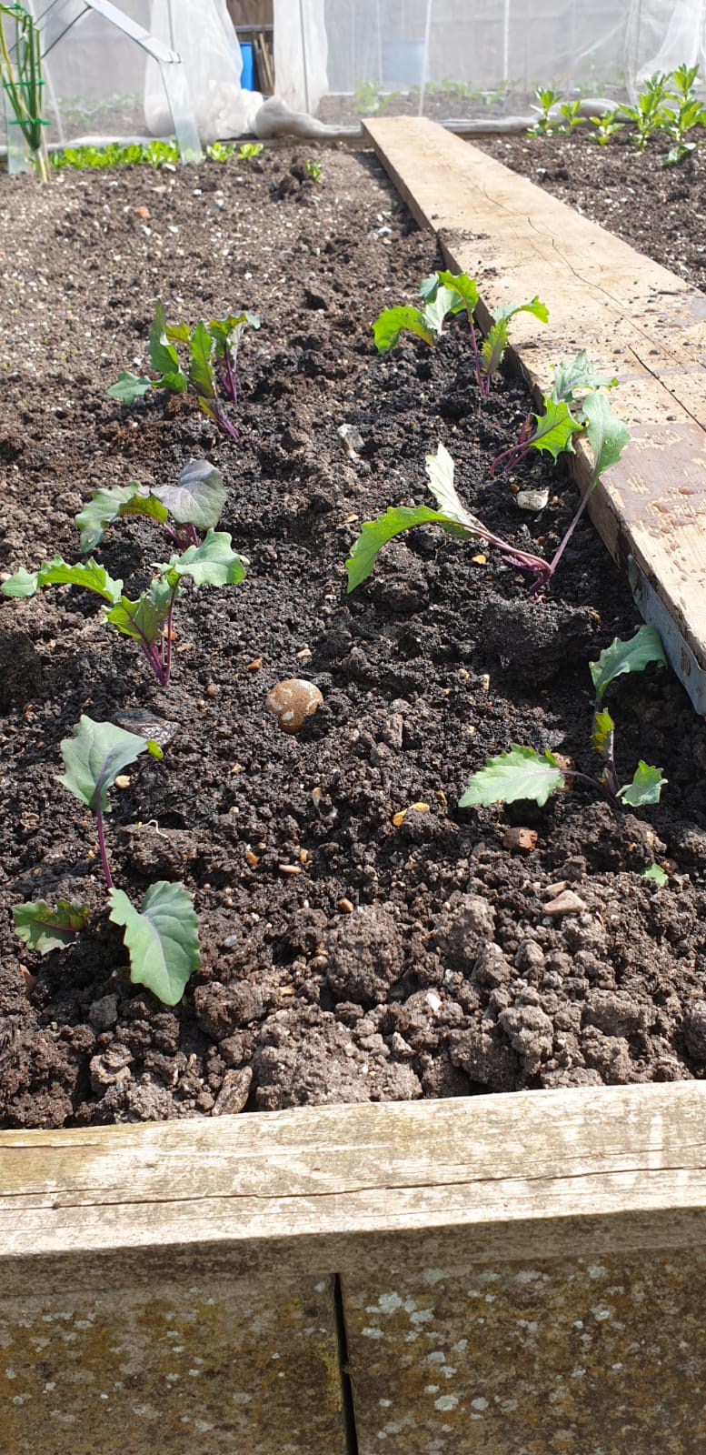 Last weekend, the plants were ready to be planted out. Well we think they were. We’ve never grown them before, so we can’t be sure. But we understand that they’re part of the brassica family, and they were the same size as we would usually plant out cauliflowers, etc. so we went for it!