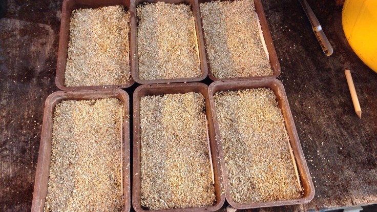 Afterwards, the seeds are very gently pressed slightly into the surface of the compost before covering with vermiculite. The seed trays were then placed in the propagator with a sheet of glass and a piece of newspaper over the top to exclude light until they have germinated. Whilst on the propagator, they should be checked regularly as the seed trays are only small and can easily dry out. If this happens, you can moisten the compost again with a fine nozzle pump sprayer. No huge jets of water, or you’ll wash your seeds out of the compost!