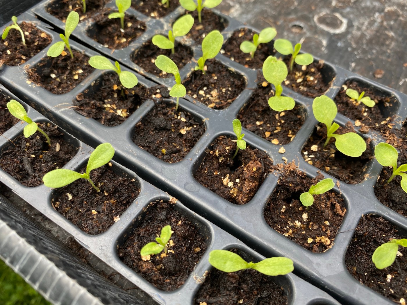We sowed some Little Gem and some Iceberg lettuces a couple of weeks ago. These have now been pricked out into small cell trays (about an inch diameter) and will be grown on in these until they are ready to be planted out. They are being grown on at the moment in a cold greenhouse, to provide them with some protection as the temperature can still fluctuate quite a bit at this time of year.