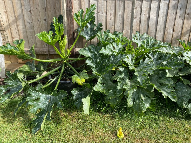 It is interesting to see how the Midnight courgettes are fairing compared to the British Summertime plant. If you remember, the Midnight variety is bred for its compact nature and especially for container growing on the patio. The British Summertime on the other hand is a regular courgette variety. Hopefully you can see from this photo which of the courgettes is which!