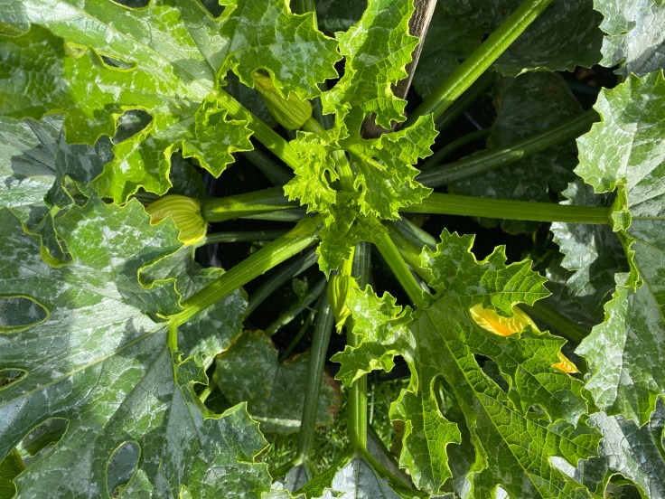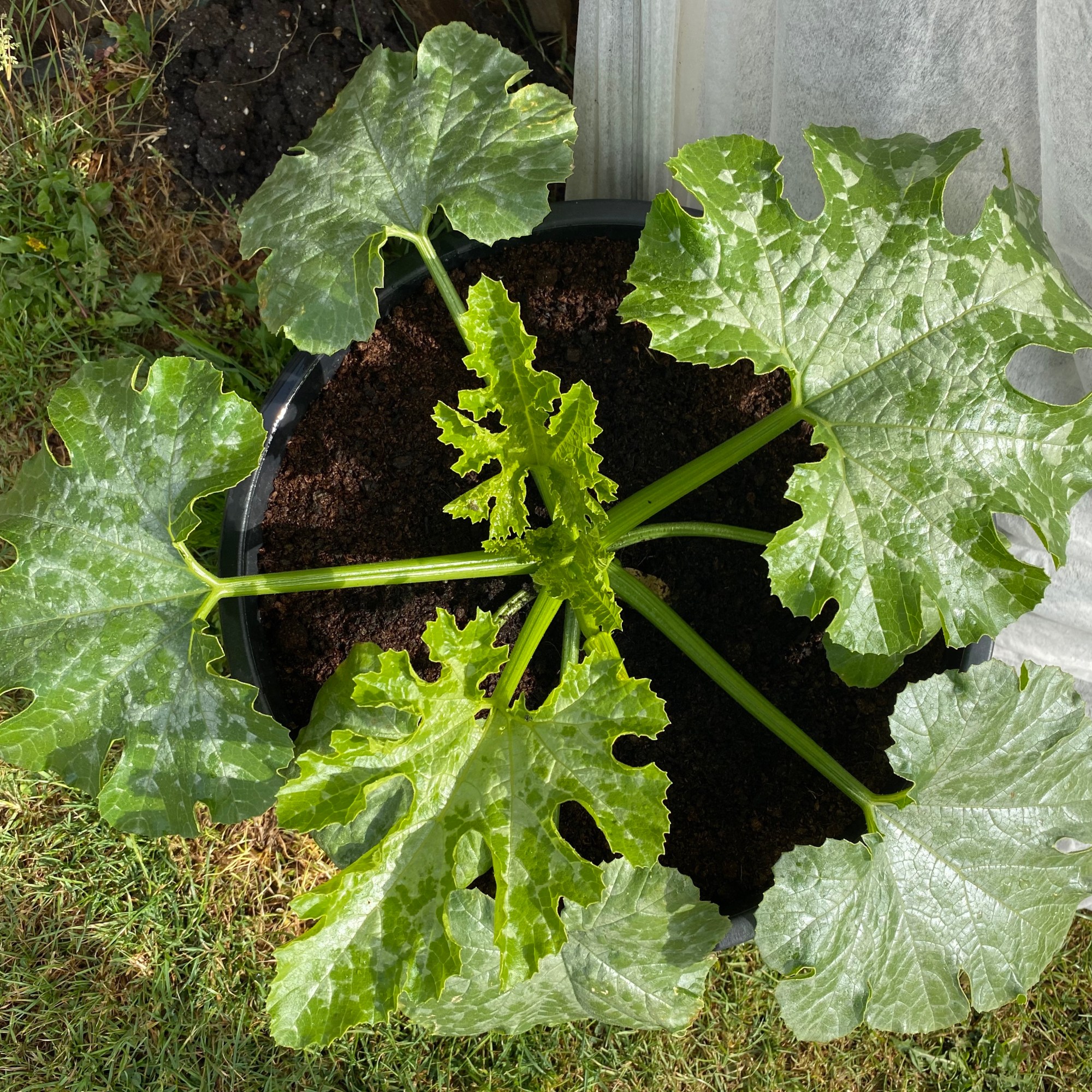 The Midnight variety never ceases to amaze us in how truly compact it is! Not sure if you can see them all, but there are 5(!) courgettes at different stages of development on this plant alone.