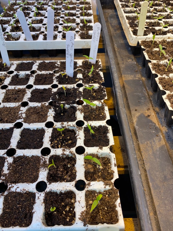 After they germinated, they were pricked out into small cell trays as shown where they will be grown on until they are ready to be potted up.