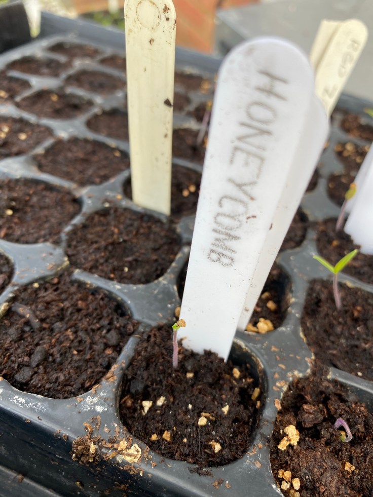 It’s a bit early to be sowing courgettes and tomatoes outdoors just yet, as the temperature is still quite cool, and they won’t like any frost! However, we’ve started ours off in the propagator and will then grow them on indoors before hardening them off and planting them outside once it warms up a bit.
