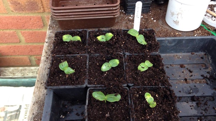 We also pricked the courgettes out a week later. As these produce a larger plant, they are pricked out straight into 3″ square pots which they will stay in until they are planted out.