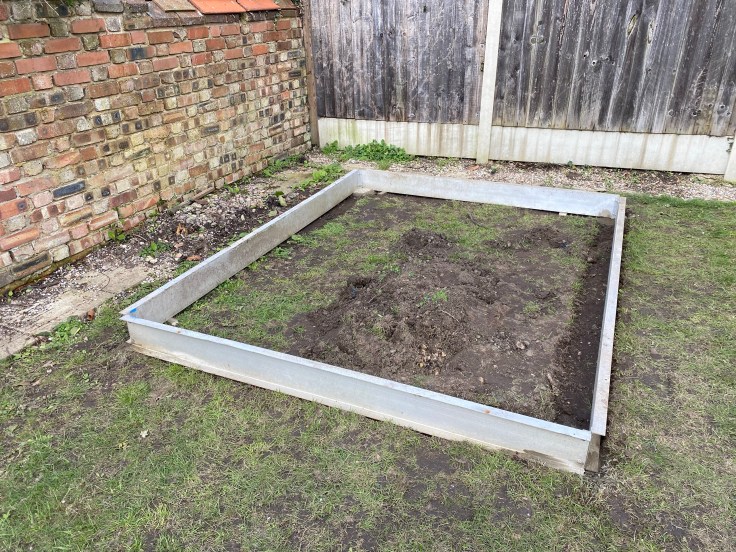 We then had to level off the soil under the base so that it sits level. Unfortunately our garden isn’t perfectly flat, so there was a bit of digging out to do to level it out.