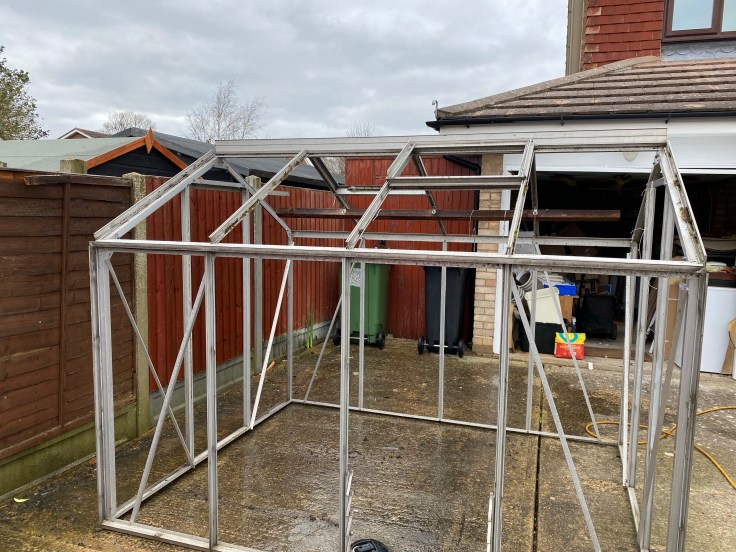 Whilst the base was drying off, we also gave the greenhouse a bit of a clean off, as it had lots of moss etc. on the frame.