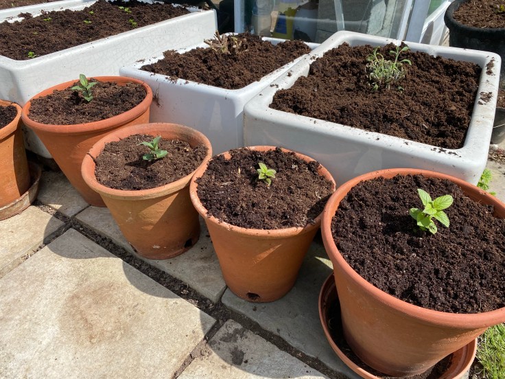 When it comes to the mint, we took cuttings a few weeks ago which have now grown on. We find that this creates a more vigorous plant than keeping the same one in the pot year-on-year.