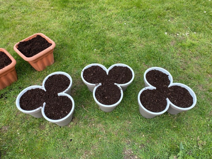 As with most things, we filled the bottom of the pots with soil and then topped them up with multipurpose compost. We then planted a strawberry plant, kindly given to us by one of my aunts into each pot and watered them in well to settle the plants.