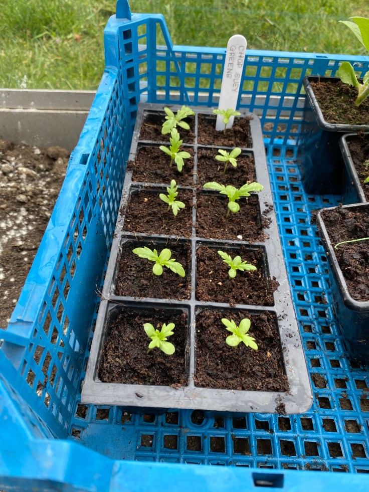 We’re having varying success with our new crops for this year. The first of these, the pak choi seem to be growing away nicely in their pots, and before long we’re going to have to decide where we’re going to pot them up/plant them out.