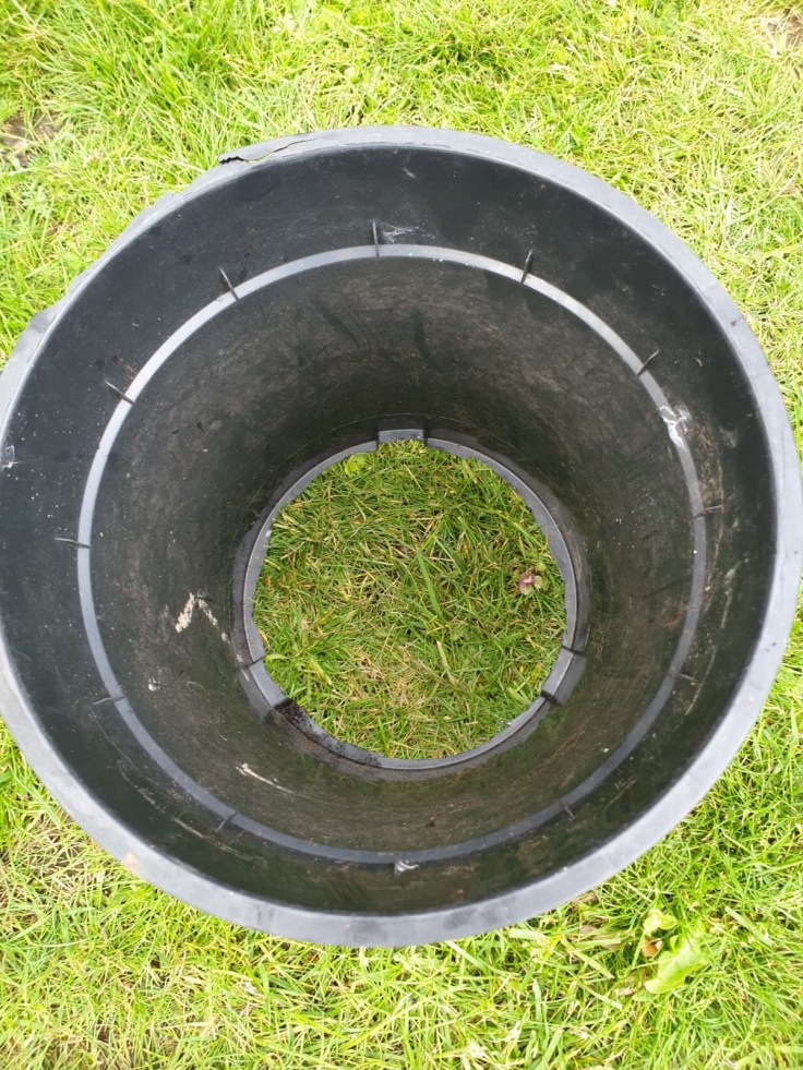We didn’t have any bottomless pots, so we carefully removed the bottoms from a couple of pots with a stanley knife.