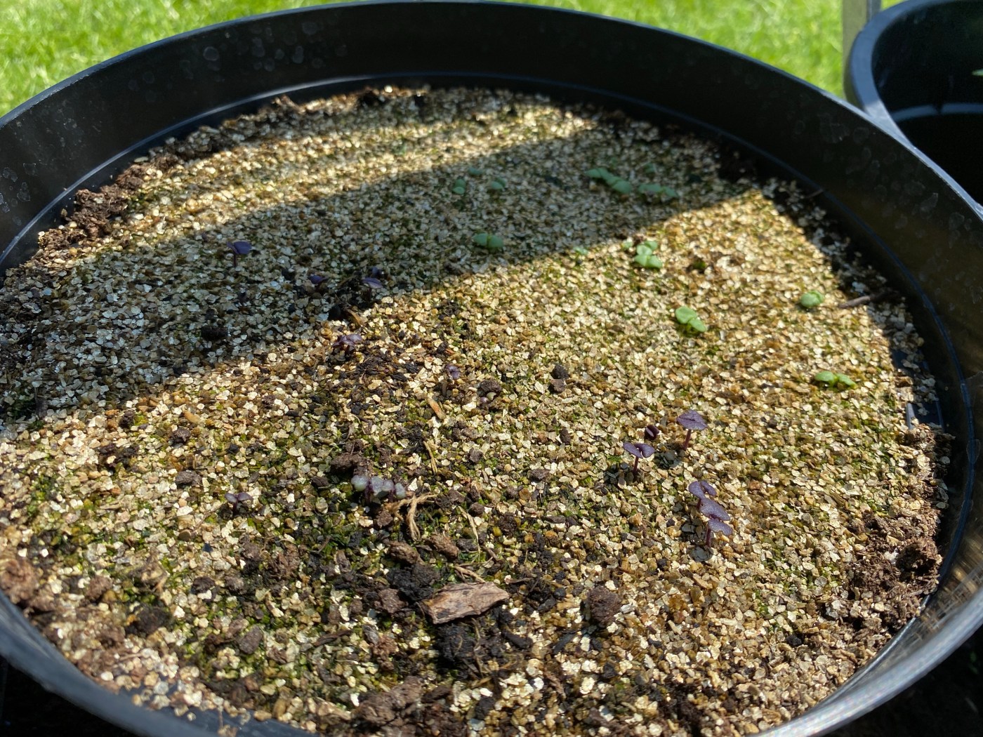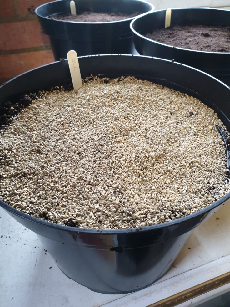 We then did our best to space the seeds around in the pot before covering with vermiculite.