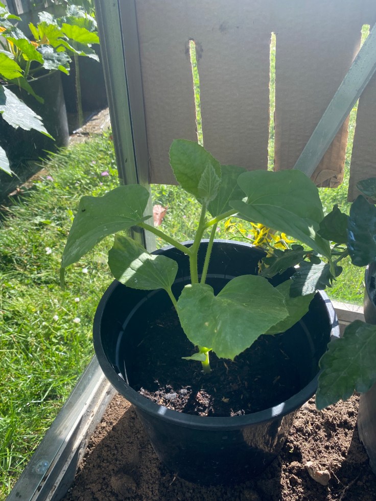 The Salt and Pepper plant is still thriving in the other corner. It’s now got a cane, a sun hat and also a tiny baby cucumber starting to form. We’ll keep you updated!