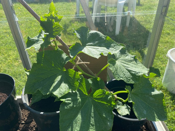 Initially, we were being quite sparse with the water as cucumbers can be a bit funny if they’re overwatered. I think it turns out that this variety don’t mind, and they’ve definitely picked up since we started being a bit more free-flowing with the water!