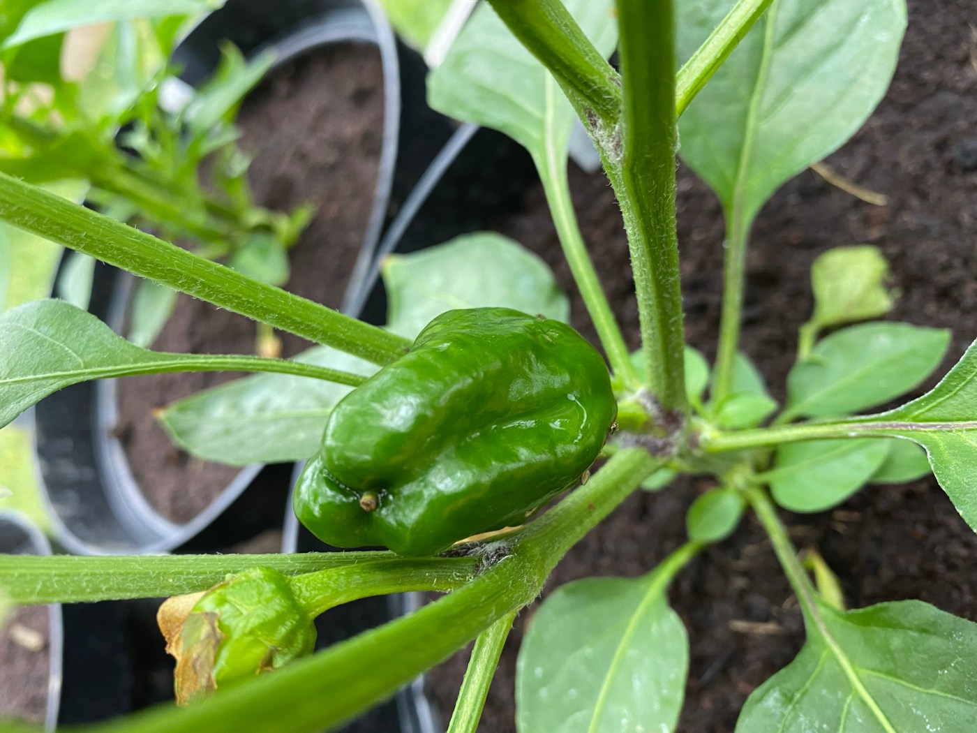 As well as the tomatoes, we also have some cucumbers and peppers growing in the greenhouse. And we have our first pepper, Redskin formed. The rest of the plants all have plenty of flowers on, but we haven’t found any more peppers that have formed yet. We are keeping our eyes peeled though!