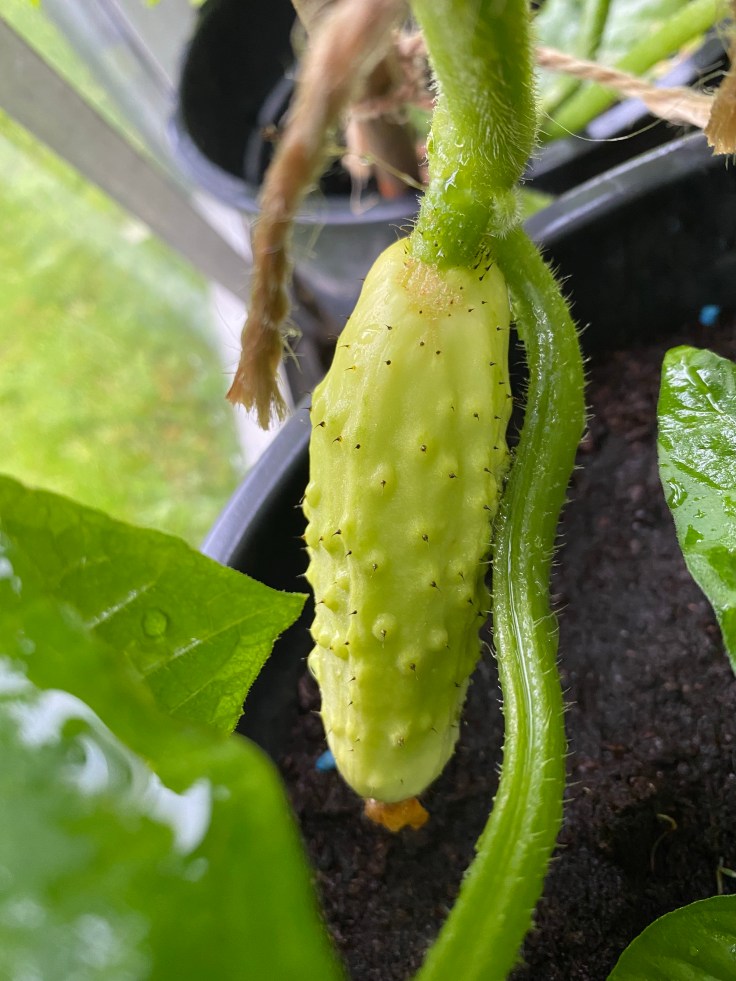 And then we come to the Salt and Pepper cucumber. We’ll be honest, we’re not sure what to make of this one yet! But we shouldn’t let the fact that it doesn’t look like a regular cucumber put us off. We’ll give it a chance and see what it tastes like once it’s finished growing!