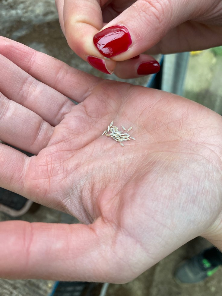 You might be able to make out from the photo that there’s a number “3” in a circle next to the variety’s name. We find that it’s helpful to include this when sowing seeds as a record of how many you sowed. This can help when it comes to the seeds germinating, and gives you a good idea whether there are many more seeds that you are waiting for, or whether those you’ve pricked out are all you’re going to get. It can also help you work out if germination levels are still good when you’re doing seed trials like we are here.