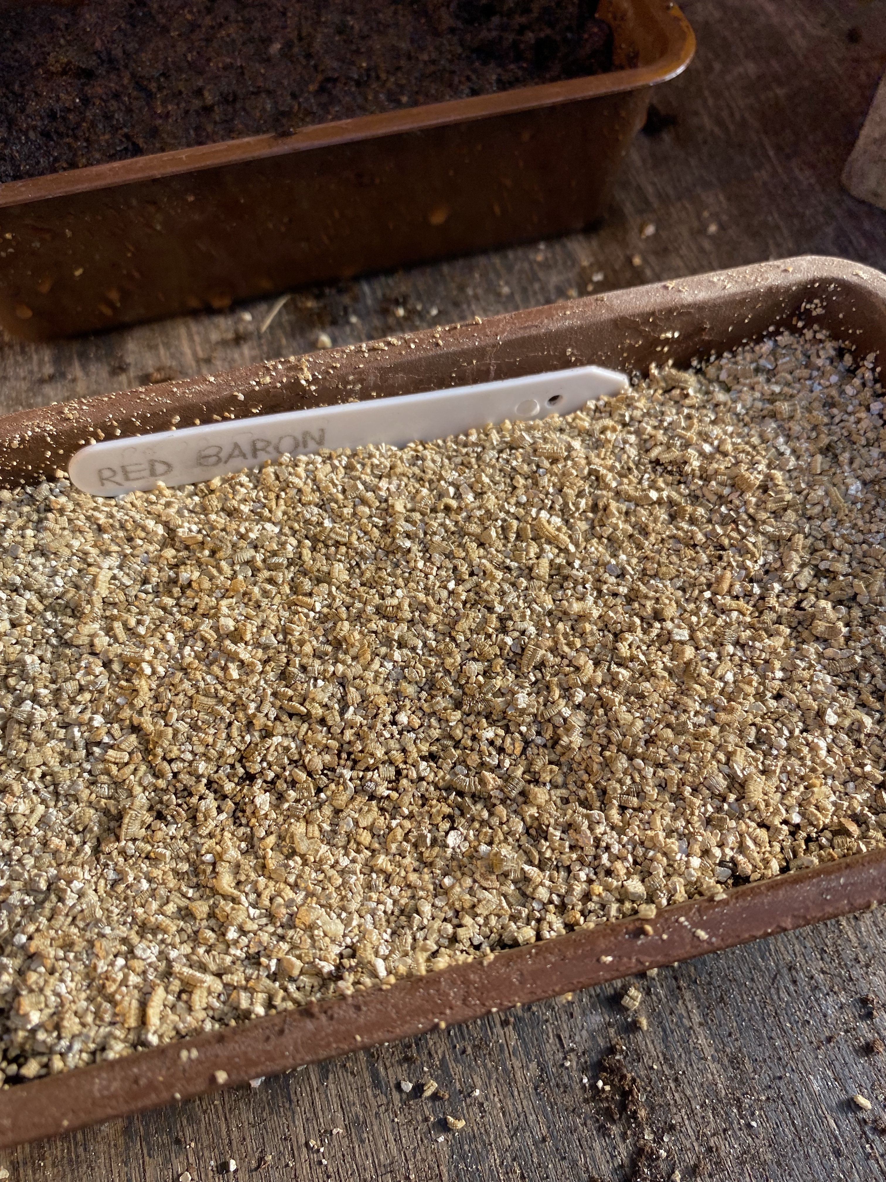 After this, we covered them with vermiculite and labelled them up. They then went on the propagator to germinate. It’s not always necessary to germinate onion seeds on a propagator, but we find that it’s best whilst the weather is still colder.