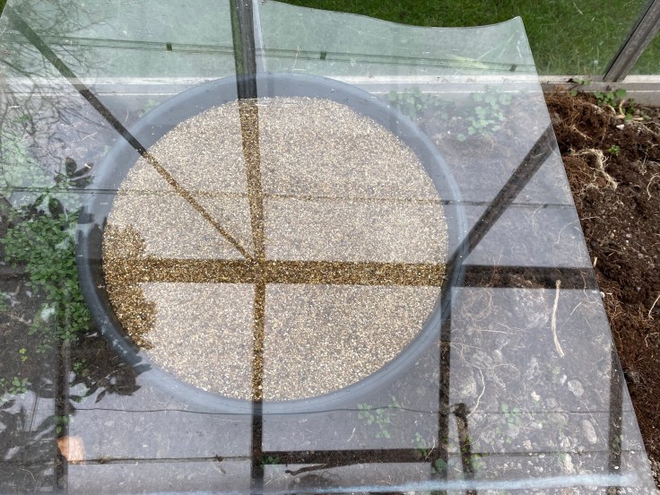 We placed a spare piece of glass over the top to keep the seeds slighter warmer seeing as it’s still quite early in the season and the weather isn’t being overly kind to us at the moment!