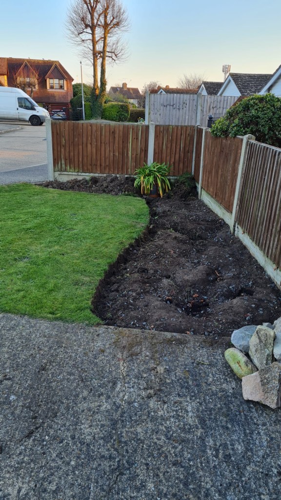 And here’s the finished product (bar some levelling out that needed doing). Now just to decide what to do with it. We think we might plant some evergreen shrubs to give us some colour all year round.
