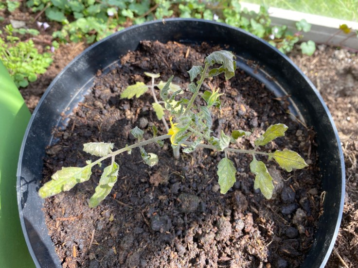 We had sown a couple of tomatoes, Yellow Mimi, earlier than our other tomatoes in the hope of some early cropping tomatoes.