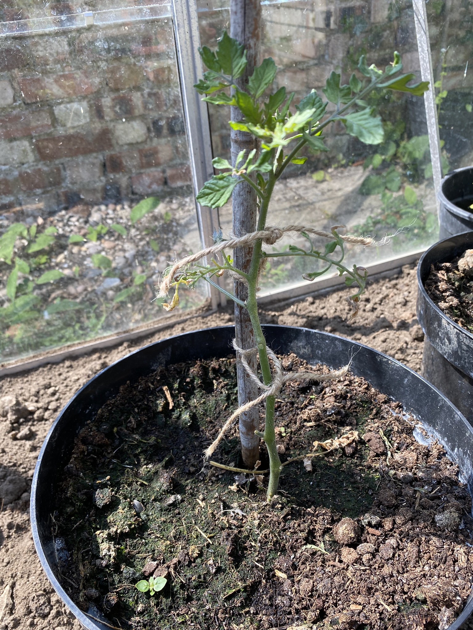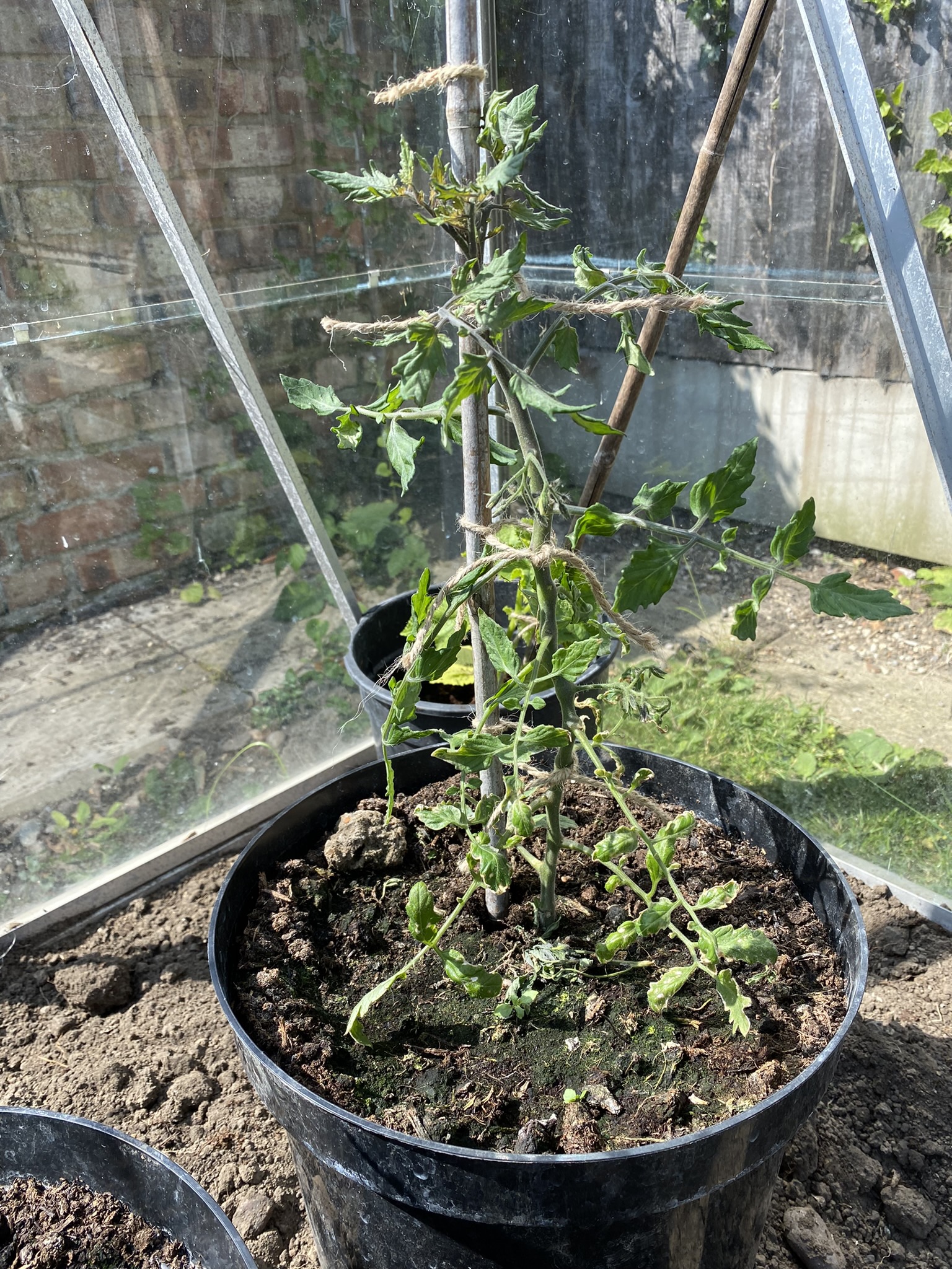 The plant on the right is more worse for wear. We lost its first truss, and its lower leaves as well as its growing point. However, luckily a side shoot survived and so we are looking to grow that on as the main growing point now.