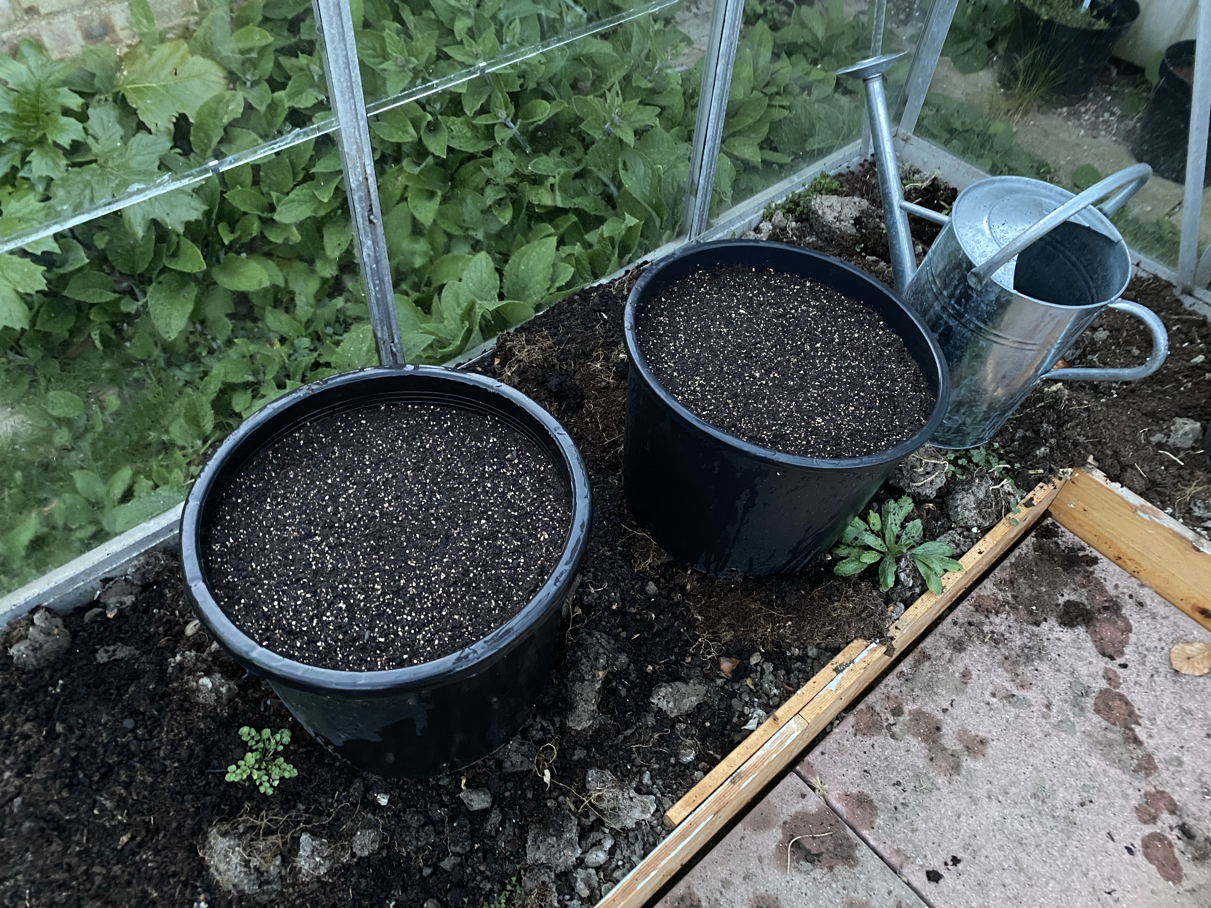 So here we have it – our three carrots! We didn’t want to give up on those seeds that had germinated though, so we’ll keep looking after these until they’re ready to harvest. Although these have been growing on in our greenhouse, we moved them outside into a sheltered spot last weekend.