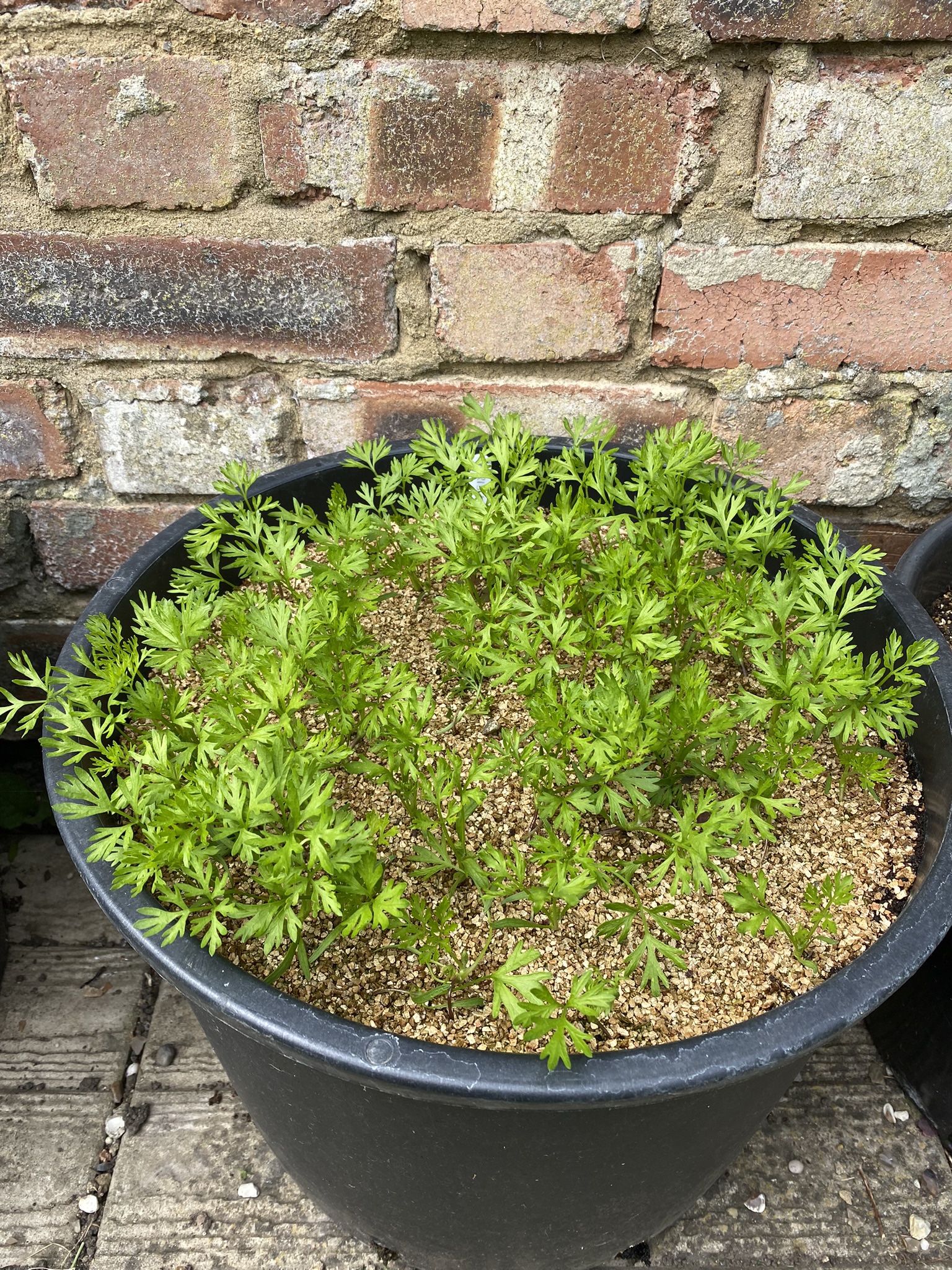 Back in February, we sowed our first sowing of container carrots, Red Ideal. We’re not sure why, but the germination wasn’t great. Maybe it was because it was too cold at that time of year, or perhaps because of the seed as it was a packet we started last year.