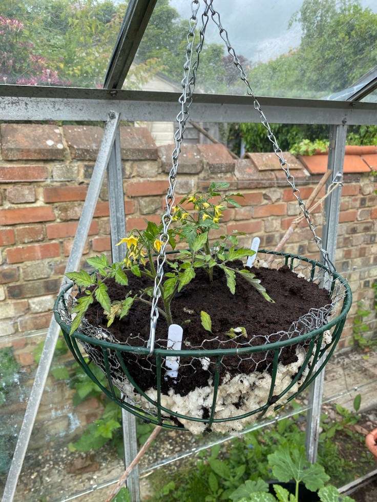As well as our tomatoes in pots, we’re also going to grow some tumbling tomatoes in hanging baskets again this year, a mix of red and yellow cherry tomatoes.