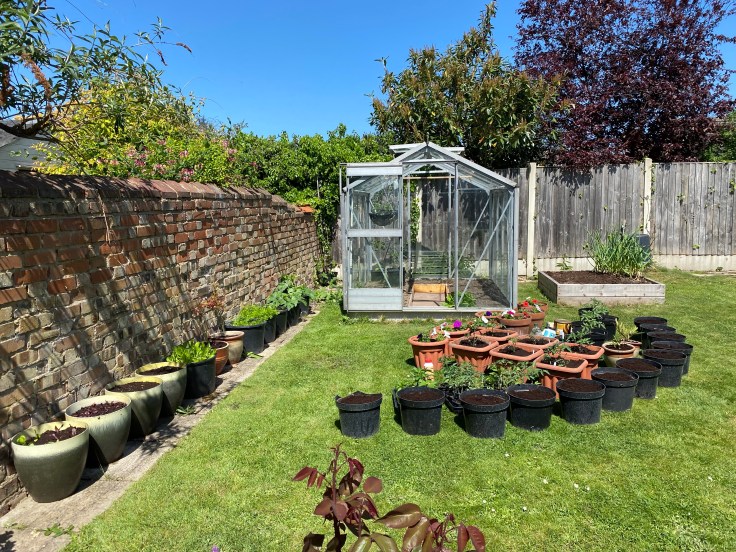 We’ve got the crops we’re growing so far up against the wall to protect them from the elements, but we’ll probably move them to other parts of the garden as the number of things we have on the go increases!