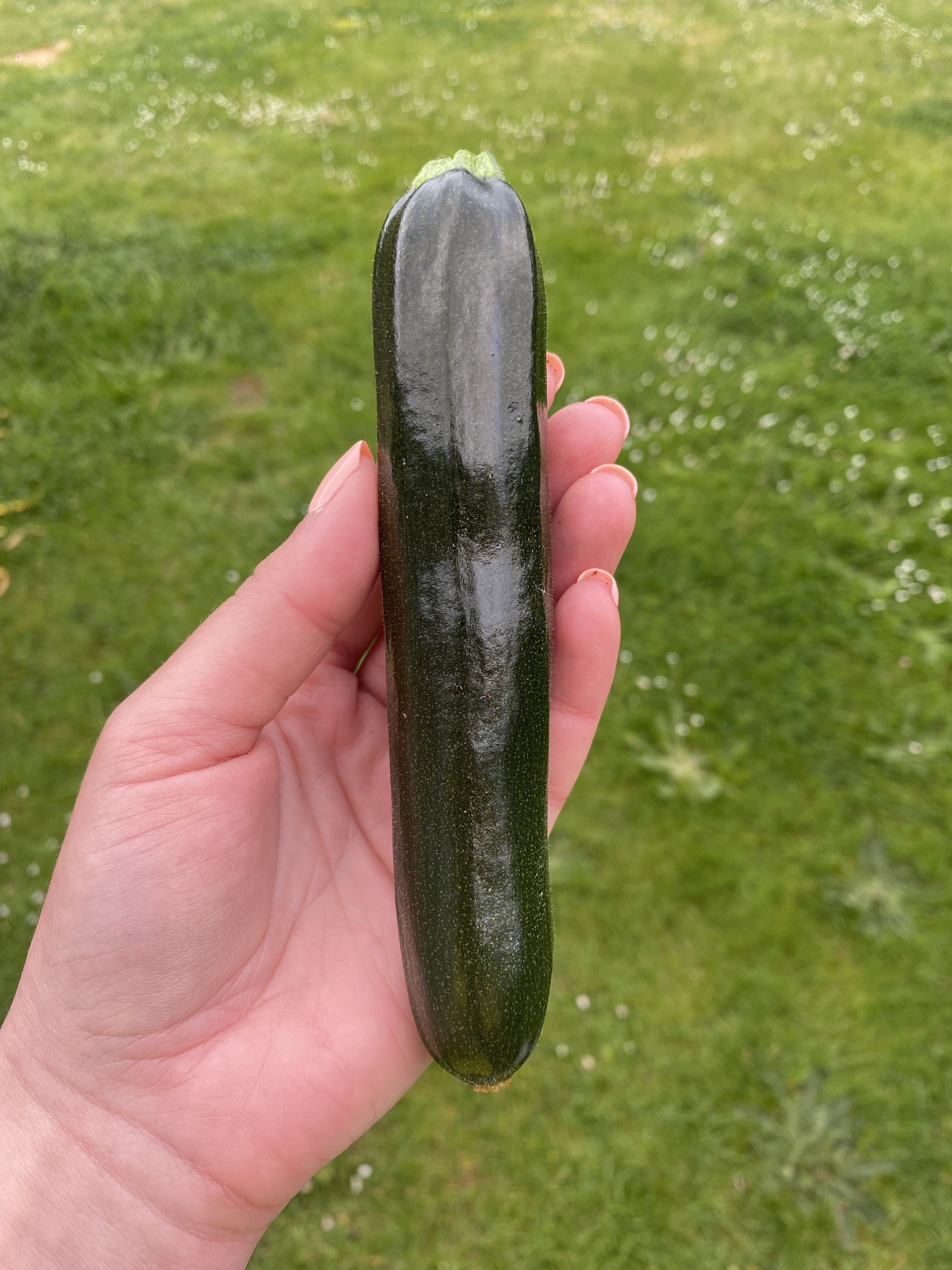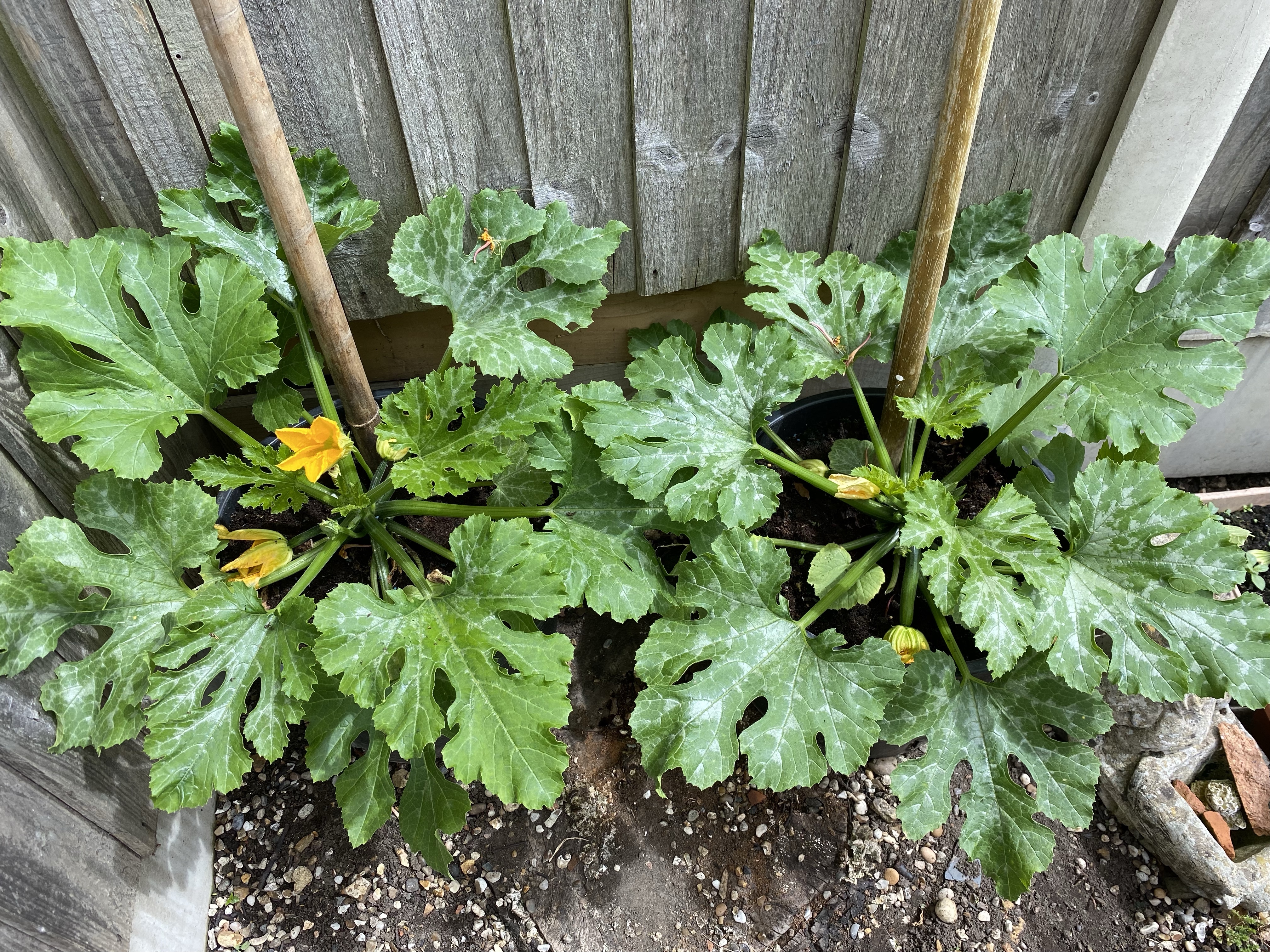 As well as the courgettes that we’ve just planted out, we also have our two early Midnight courgettes which are really getting going now. In fact, we harvested our first courgette of 2022 last week!