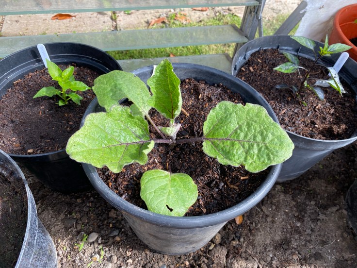 Last but not least is our aubergine, ping tung long. This is another new variety to us this year, and we haven’t had much luck with aubergines in the past. We’ll see how we get on with this variety this year though.