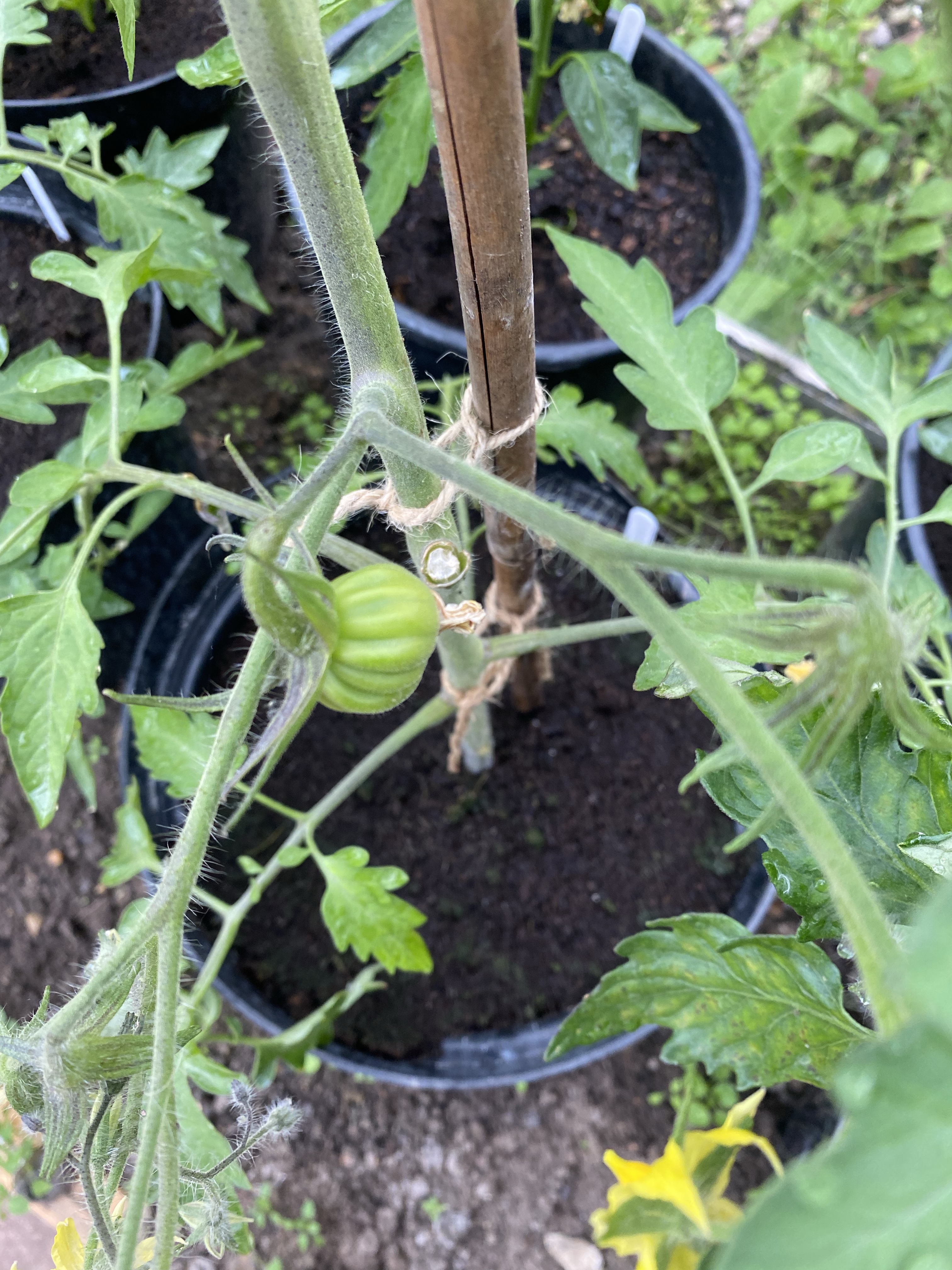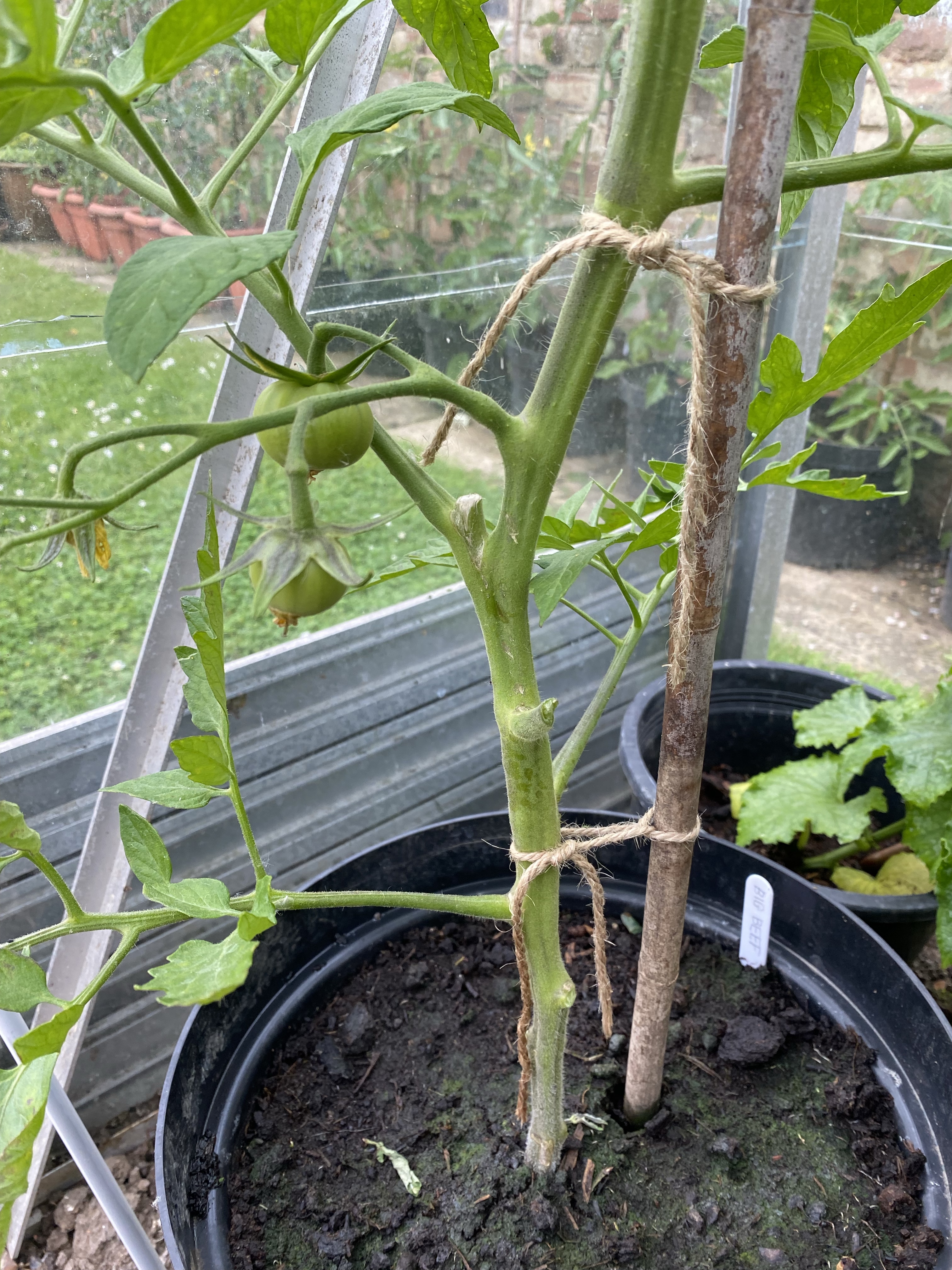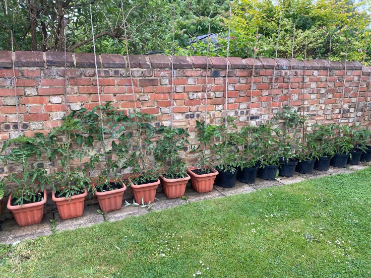 Not all of the tomatoes are starting to set fruit just yet, but hopefully it won’t be long before they are. They are all happily growing away up their canes though.