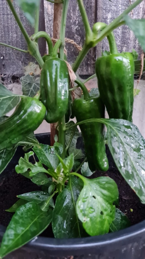 And the best part is that there are plenty more where these came from. There are lots more small peppers that have recently set and so we’ve got more padron peppers to come this summer. We’ll just keep our fingers crossed for the weather!