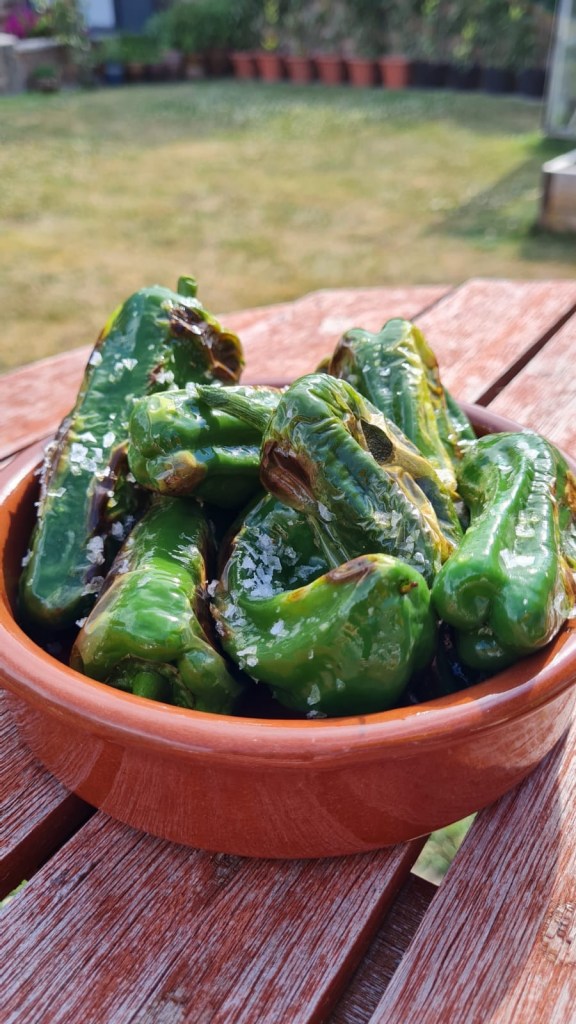 Our Boiro padron peppers had grown some pretty large fruits and the below demonstrates the phrase “from plot to plate” perfectly – and all in the space of about 30 minutes. You really can’t beat it!