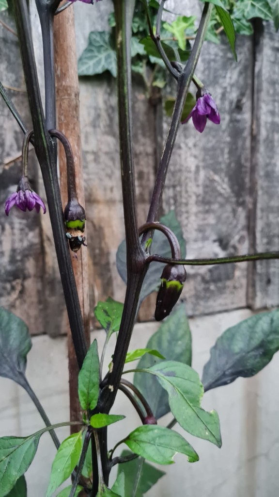 The Vampire chilli peppers have also started to set, and they are certainly delivering on the dark purple fruit front as advertised. Their purple flowers are also very striking!