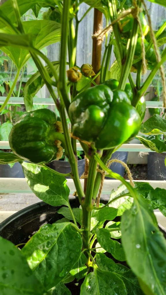 Similar with the bell peppers which are starting to set and swell. Fingers crossed the warm weather hangs around long enough to ripen these. We do find that slugs like to take a nibble out of these though, so we’ll be keeping an eye out!
