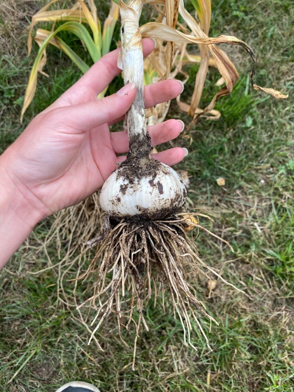 Harvesting the elephant garlic